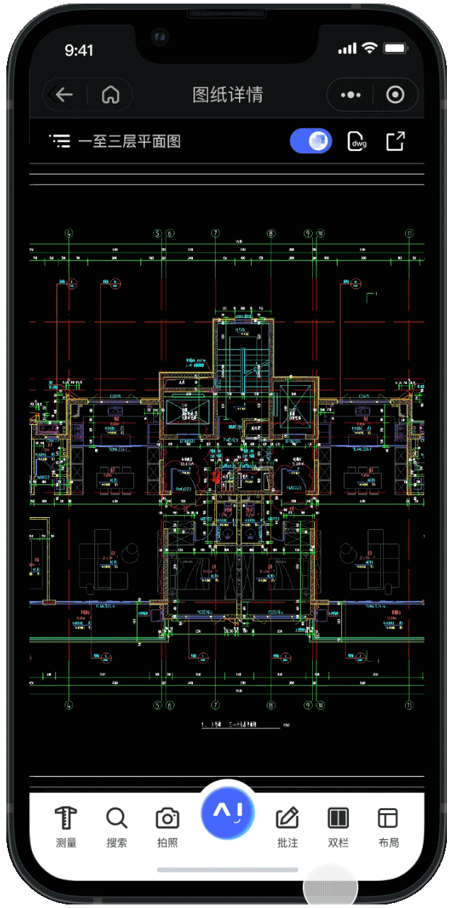 在图纸管理协作方面,AI可实现按图纸按专业/子项/图名/图号进行自动整理,图纸查找效率提升6倍以上,支持详图跳转、图纸对比、问题验证等一系列全新能力。