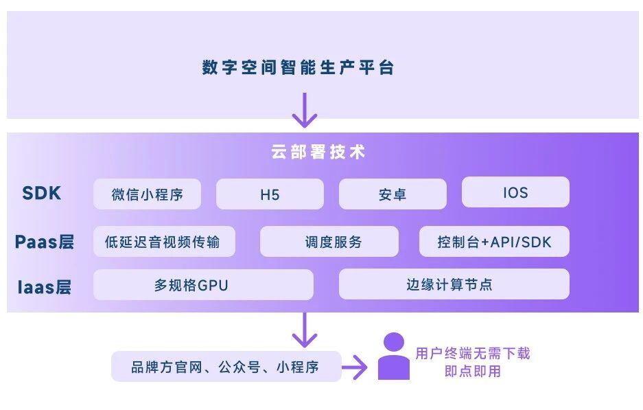 我们将“未来会场”这类基于UE等高端引擎开发的复杂程序,整体部署在云端高性能服务器上运行。云端完成所有重度渲染计算后,仅将生成的超高清画面与音频,以低延迟视频流的形式“流式传输” 到用户的浏览器或小程序中。同时,用户的操作指令被实时反馈回云端,实现实时交互。