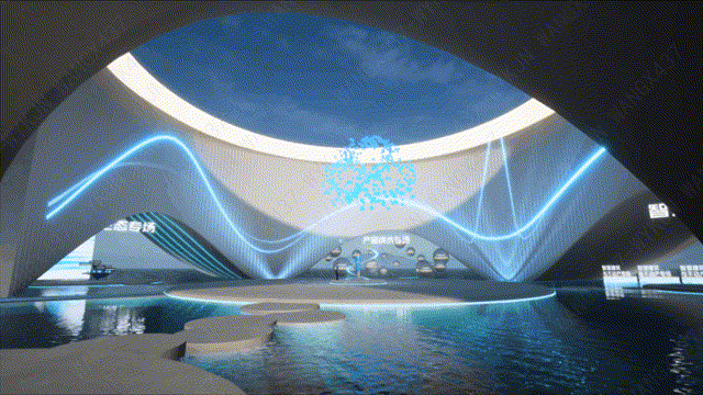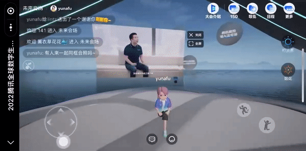 虚实结合,充满科技和未来感的环形舞台、腾讯滨海大厦天际线、旭日东升的海上美景,用户可以在不同会场之间自主漫游,流畅低延迟地体验3D场景,远眺天际线,更加立体多维的感受“数实结合”的魅力。